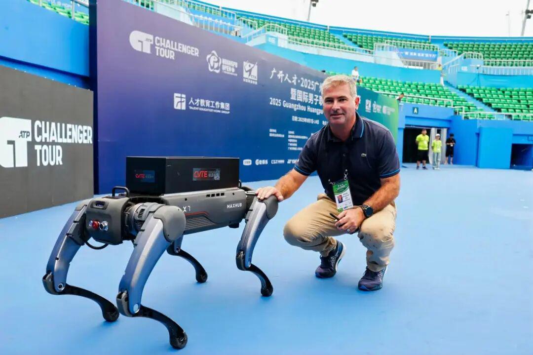 开幕式的一大惊喜,来自黄埔本土科技企业视源股份研发的工业级四足机器人——这位特殊的“工作人员”精准完成任务,为开球嘉宾递上比赛用球,以灵动的姿态与硬核的科技实力,成为黄埔“广东智造”的鲜活代言人,更让现场观众直观感受到“体育赛事+ 前沿科技”的碰撞魅力。
