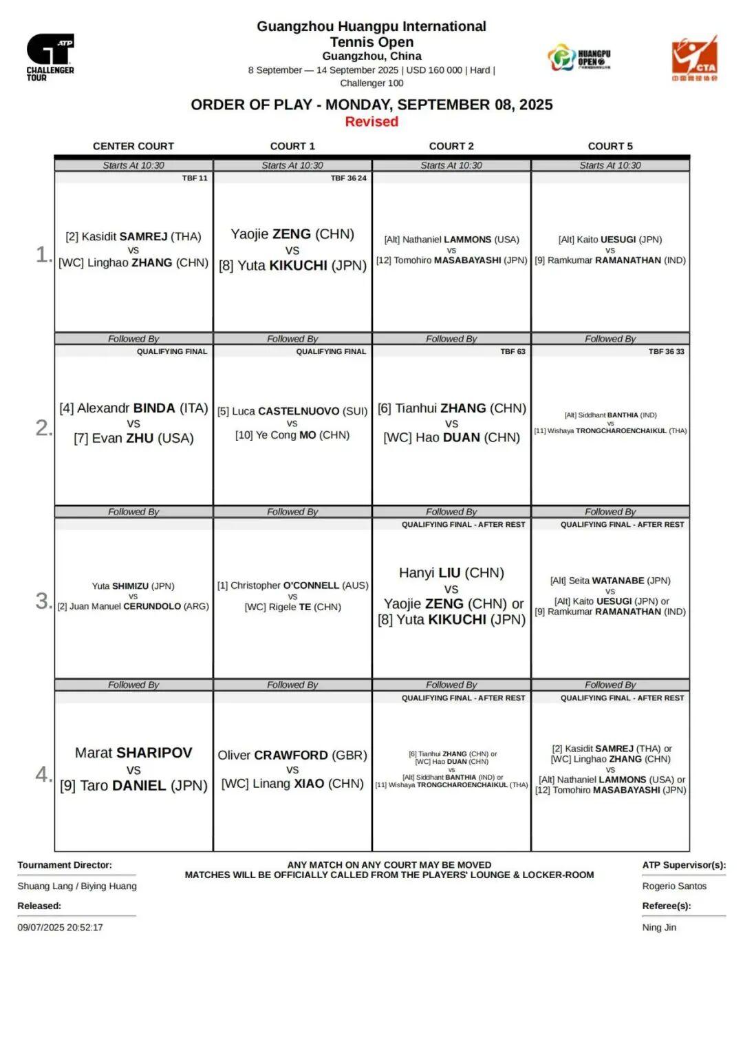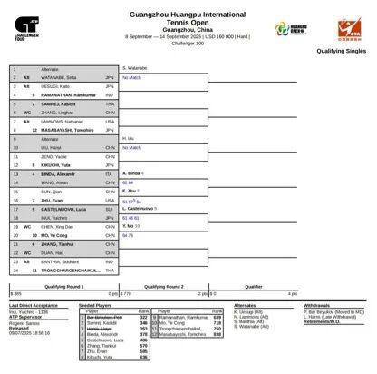 附9月8日赛程及单打预选签表
