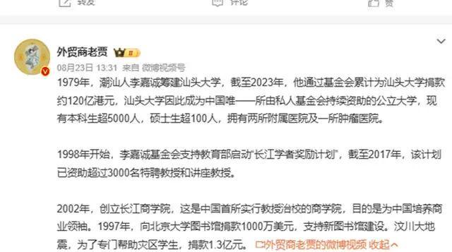 事实上,李嘉诚基金会过去几十年对中国教育、医疗的投入有目共睹。汕头大学多次改革试点、全科医生培养计划、长江商学院的建立……最近,互联网又上演了一出“甩锅大戏”:网传李嘉诚向乌克兰捐款5亿美元,顺带把潮汕大学的助学基金也“捐没了”。消息一出,评论区炸了锅——有人怒斥“资本家无祖国”,有人哀叹“寒门再难出贵子”,更有人悲情发问:“我们的学费,就这么打了水漂?”可...