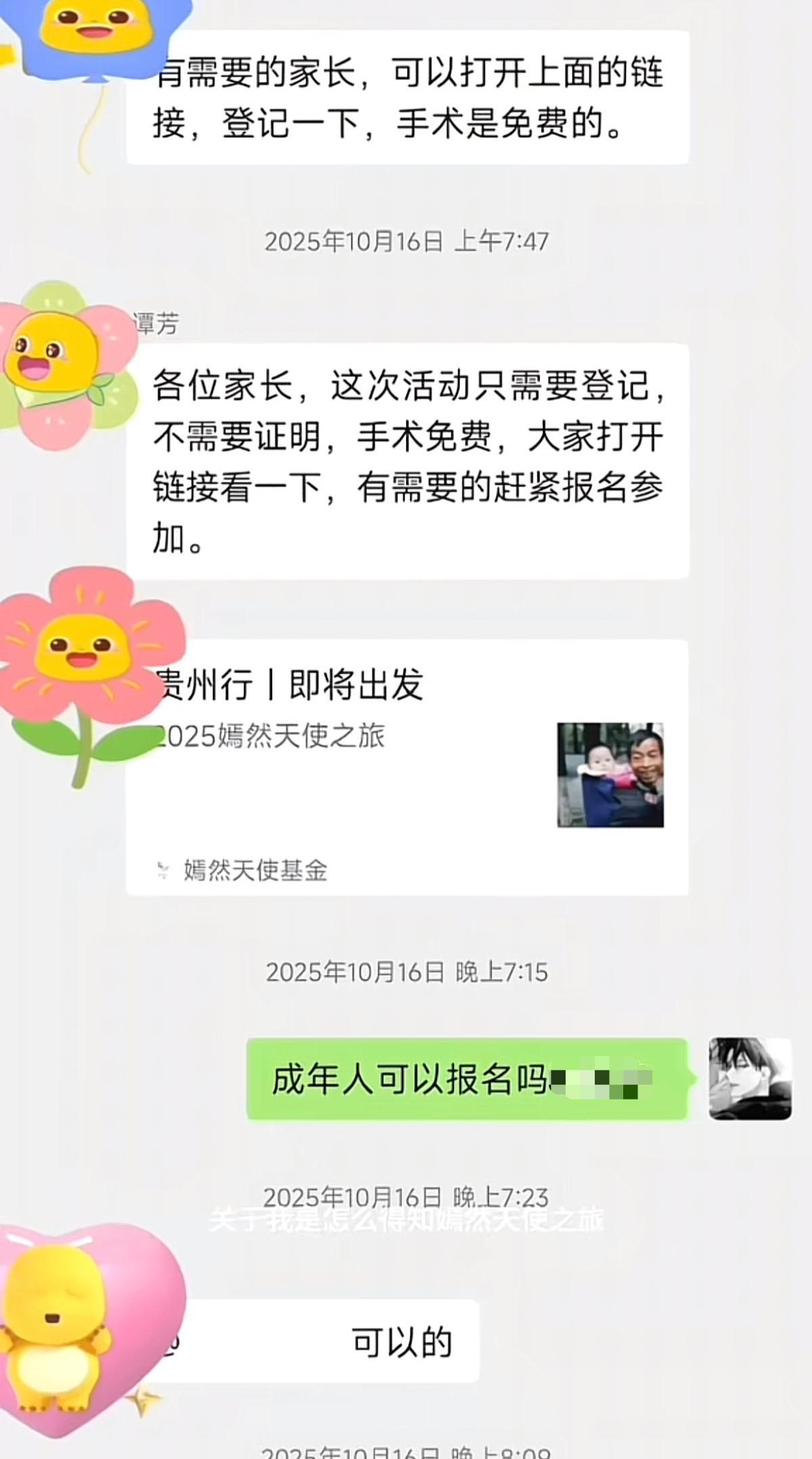 她进一步补充道:“我在嫣然做了三次手术,总共只花了不到八百块钱,其余费用全部减免。”