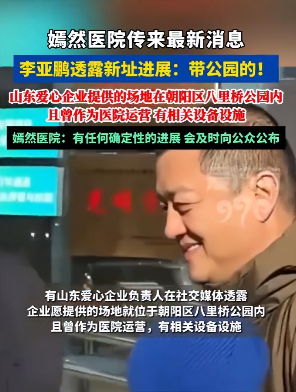 李亚鹏露面证实嫣然医院新址进展:“找了个新地址,还带公园的”----2026-01-23 ----大河报