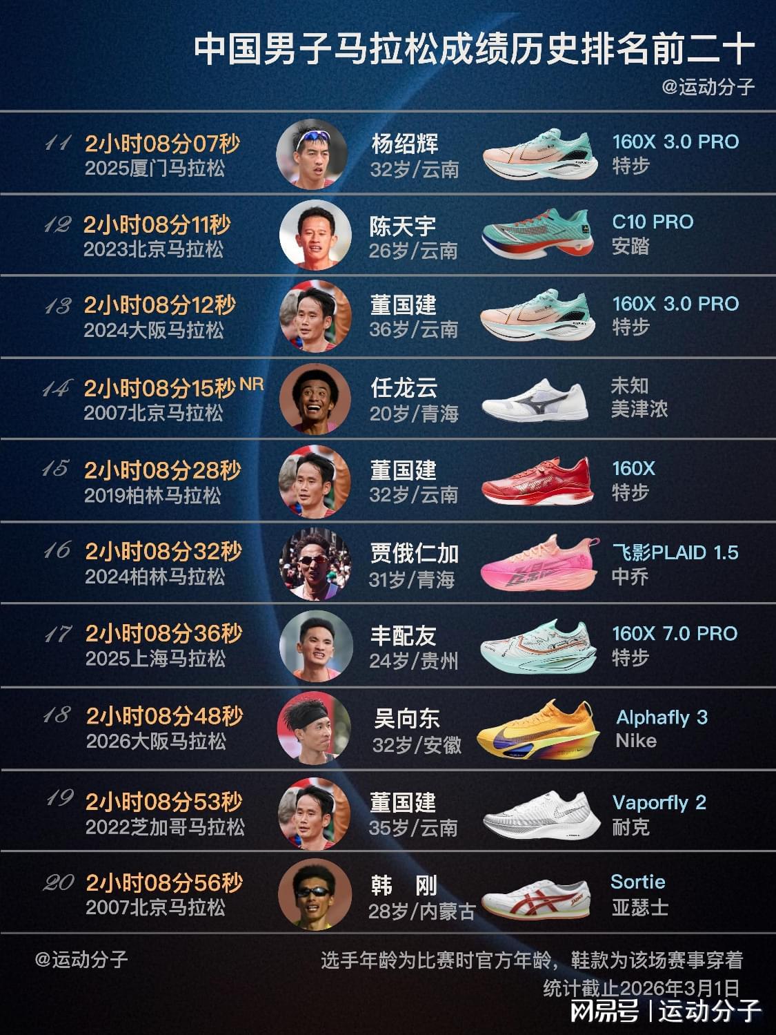 ——何杰、丰配友、杨绍辉、吴向东、陈天宇、董国建、贾俄仁加这些现役选手都赶上了超级跑鞋时代,成绩也都由碳板竞速鞋创造。